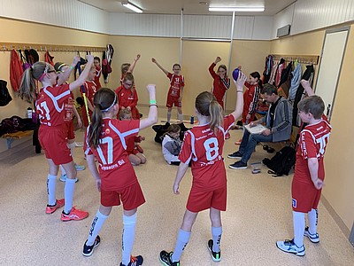 Sista matchen innebar också den tuffaste matchen. Mot Landvetter. Ett lag vi alltid har svårt mot. I omklädningsrummet började en viss frustration uppstå över för många förlorade matcher och tjejerna kom överens om att denna matchen måste vi vinna. Beslutet märktes även ute på planen och det var en hel del rejält tuffa närkamper på planen i första perioden. Alla kämpade verkligen till sista stund, men Landvetters bollskickliga och snabba spelare slank igenom. Ibland lite för lätt. Det blev så förlust även i den sista matchen och visst var det en del besvikna miner efteråt. Såklart känslor som är helt OK efter en två långa och tuffa cupdagar. Besvikelsen byttes snart mot glädje och gemenskap igen när det var dags för medaljutdelning. Alla klappade och peppade varandra när de fick sina medaljer.