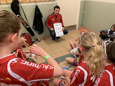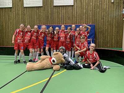Nästa dag bjöd på två tuffa matcher. Först mot Warberg som vi har mött några gånger tidigare och fått med oss både vinster och förluster. Här värmde vi upp med en promenad till skolan där tjejerna gick och sjöng tillsammans i tåg mot arenan. Nallo (maskoten) var såklart med. Tjejerna kämpade och spelade riktigt fint spel, men lyckades inte heller här stå emot och vi fick än en gång se oss besegrade.
